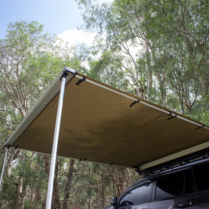 This high-quality, easy to use Awning is an ideal solution for larger vehicles such as SUVs, 4WDs, spacious wagons, vans, and utes. Crafted with robust, adjustable aluminium support poles, this 4x4 awning offers effortless customisation of its angle and height, ensuring you enjoy the perfect sheltering experience. The 280GSM canvas used in its construction guarantees unmatched protection against UV rays and rain.