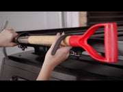 An off-road tough storage solution for spade/shovels and similar shaped gear like canoe paddles. The ratcheting straps adjust to fit various circumferences and lock tight to the sides of a Front Runner Roof Rack for rattle free, rock solid transportation. Quick release latches allow the spade/shovel or other gear to be easily removed.