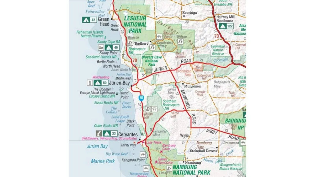 • Complete Atlas: Featuring Hema’s South West WA map with 24-hour fuel stations, information centres, rest areas, and points of interest.
