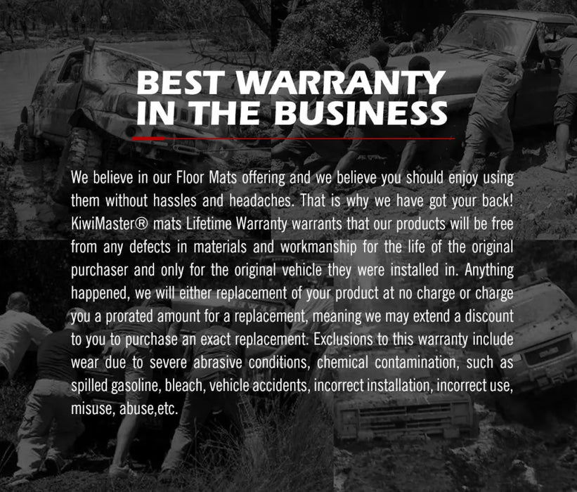 • Lifetime Warranty: With a limited lifetime warranty, the KIWI MASTER® floor mats are backed by a commitment to quality and reliability.