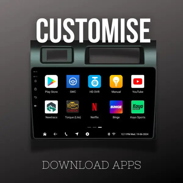 • Unlock the potential of our Android 11 head unit by downloading additional apps directly onto the system. Explore off-road maps like Newtracs or access vehicle diagnostics using apps like Torque. Customise your driving experience and stay informed on the go with a wide range of downloadable apps.
