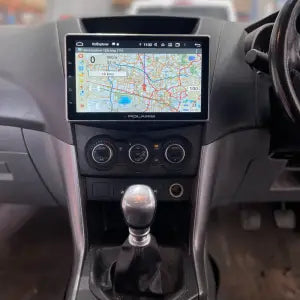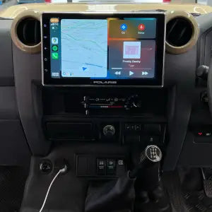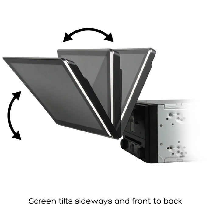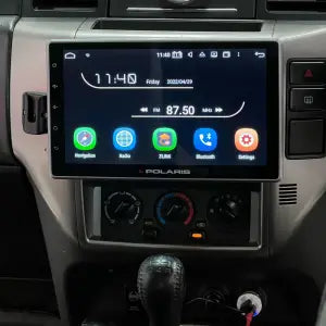 - The Polaris Universal Maxx features a 10.1 inch screen mounted on a double din head unit. The head unit is flush with the dash but the screen sits on a adjustable bracket, allowing for vertical and horizontal tilt to reduce glare. Additionally, the screen can be moved up and down for ease of access to car controls.