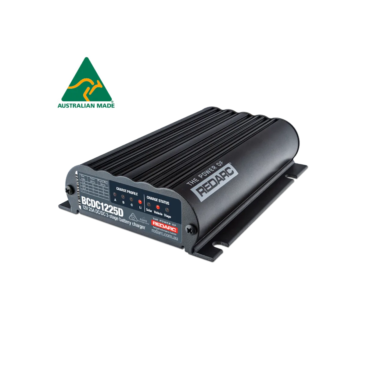 The BCDC1225D features the same patented charging profiles as it’s predecessor along with a new lithium charging profile making the unit suitable for charging AGM, Gel, Standard Lead Acid, Calcium and LiFePObatteries, perfect for pairing with a REDARC Lithium battery.