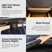 • Practical internal storage: Interior pockets, a ceiling storage net, and a shoe pocket help keep essentials organised and off the mattress.