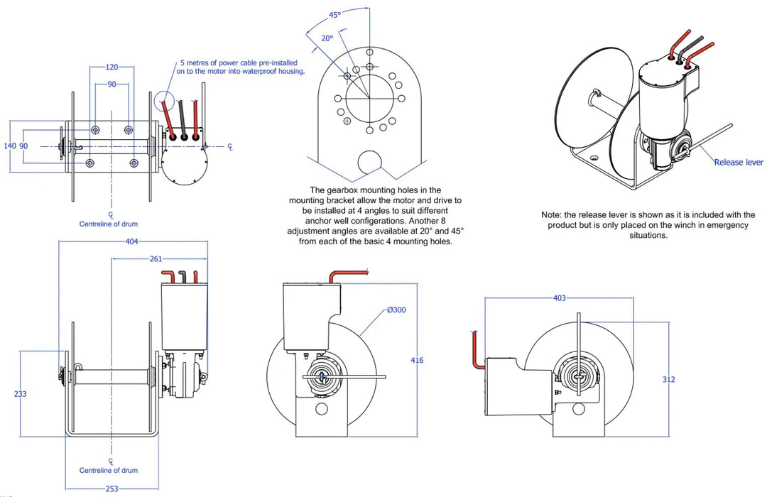 • Adaptable fit and varied mounting options, with the ability to reset the gearbox and motor assembly in 8 different configurations to best suit your anchor well.